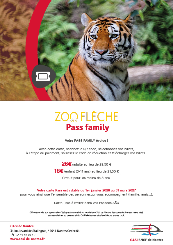 Offre réservée aux agents des CSE ayant mutualisé en totalité au CASI SNCF de Nantes, ainsi qu’aux retraités SNCF et au personnel du CASI.